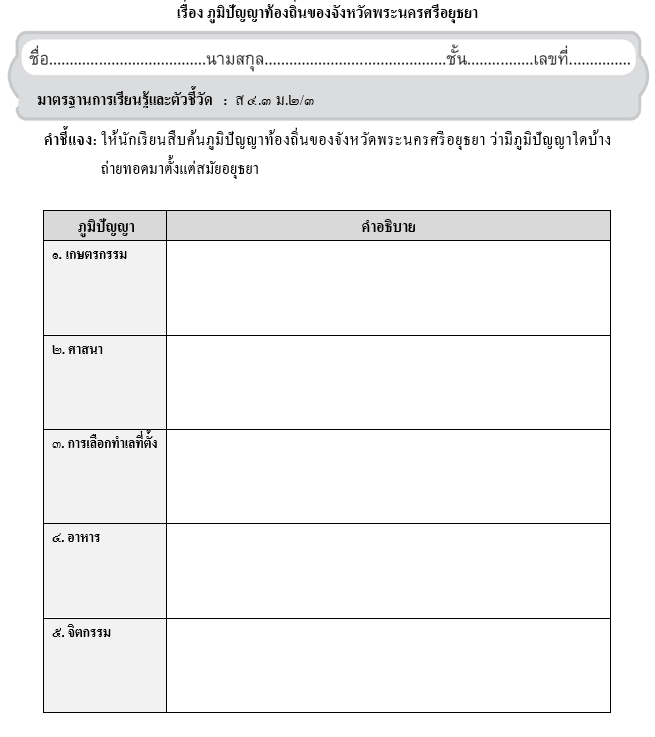 2. หน่วยการเรียนรู้ที่ ๕ ภูมิปัญญาและบุคคลสำคัญ
