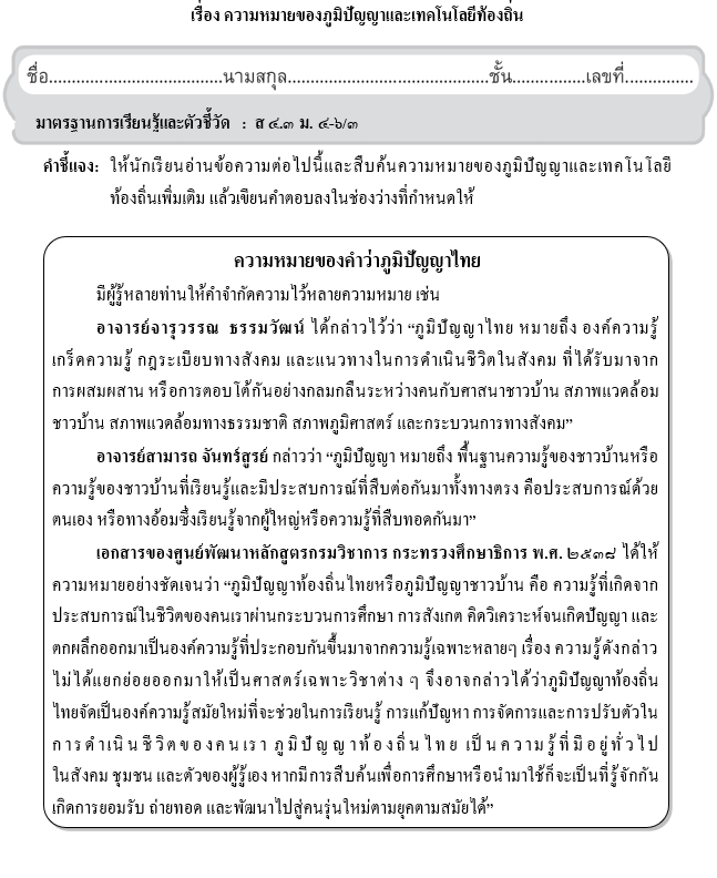 2. หน่วยการเรียนรู้ที่ ๖ ภูมิปัญญาไทยและวัฒนธรรม