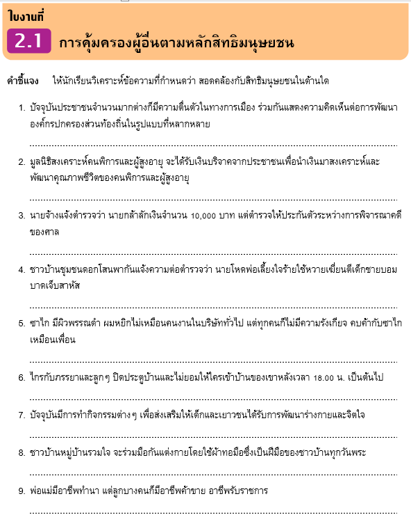 2. หน่วยการเรียนรู้ที่ 2 สิทธิมนุษยชน